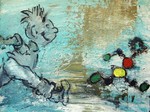 2010Kunst met een beetje humor door het verwerken van cartoons in een abstracte achtergrond